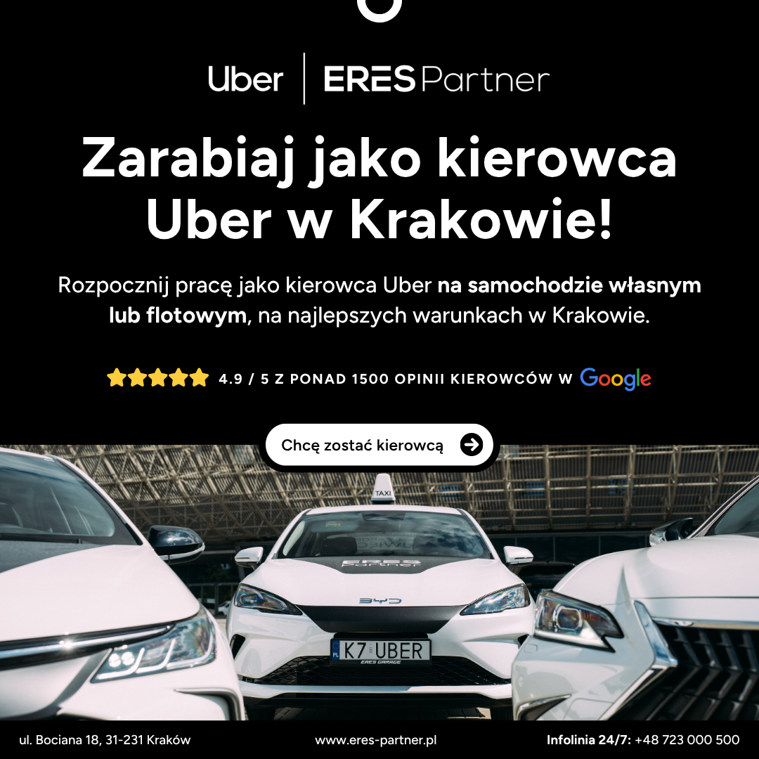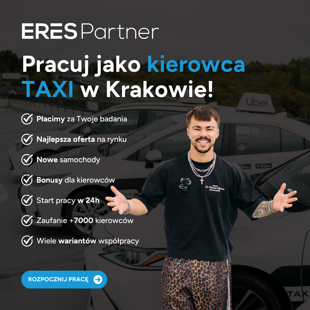 ERES Partner to największy partner aplikacji Uber, Bolt oraz Freenow i największa firma TAXI w Krakowie. Firma zajmuje się zatrudnianiem i rozliczaniem kierowców najpopularniejszych aplikacji służących do przewozu osób, zapewniając w 100% legalną pracę jako kierowca taksówki. Kierowcy w ERES Partner mogą pracować zarówno na samochodach własnych jak i korzystać z floty.